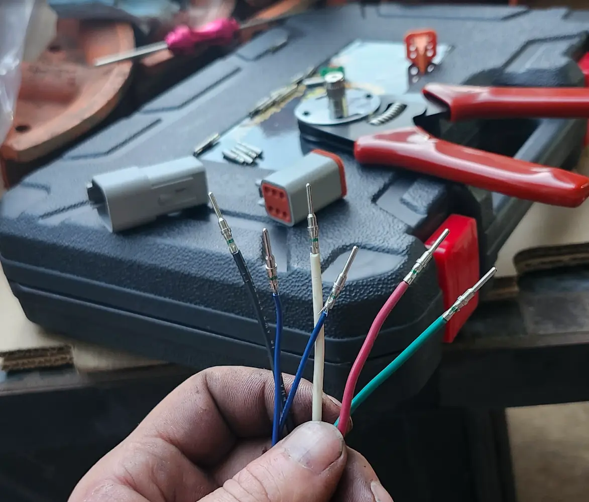 While, I have plenty of hardware for working with the metripack connectors, I was not a fan of the flimsy feeling pins. Or feeling like I was going to break and deform them every time I crimped one. The connection also did not feel nearly as secure.